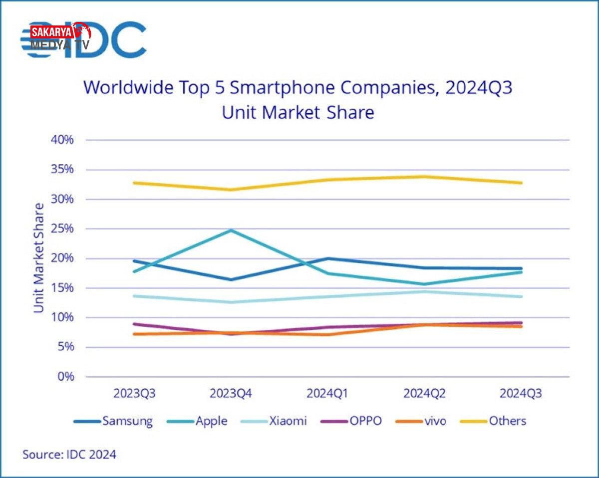 International Veri Corporation (IDC) tarafından yayınlanan son bilgilere nazaran, dünya genelindeki akıllı telefon sevkiyatları 2024’ün üçüncü çeyreğinde yüzde 4 artarak 316,1 milyon adede ulaştı.
