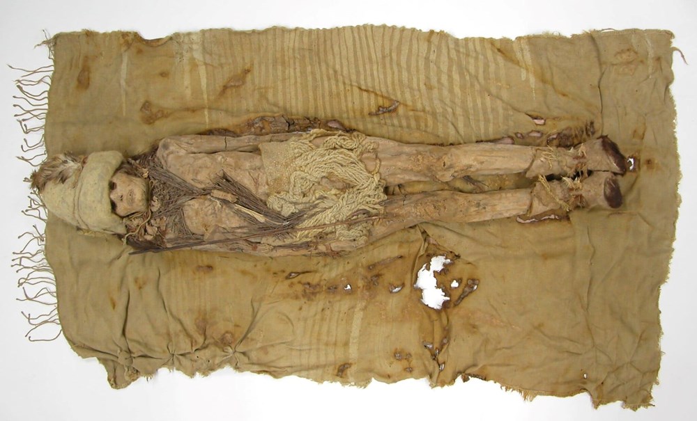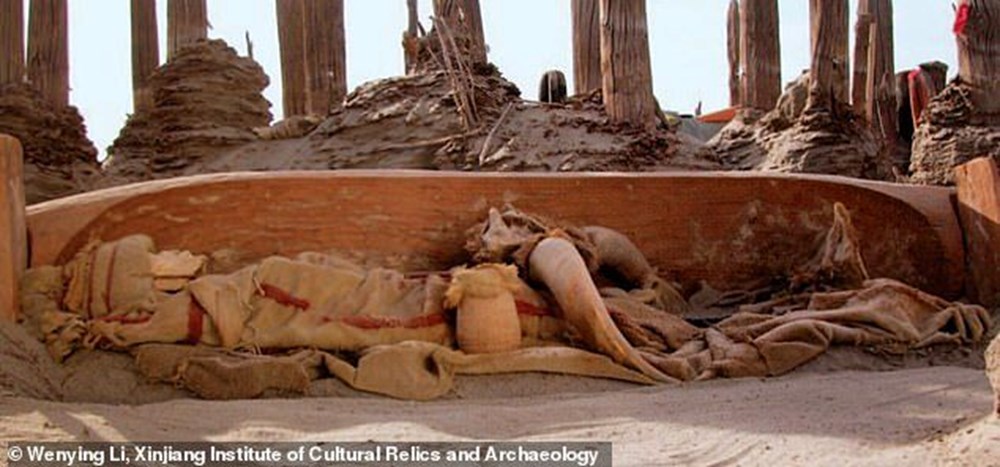 Tarım Havzası’nda mumyalanmış insan kalıntılarıyla birlikte bulunan peynir, yaklaşık 3 bin 600 yıl evvel ölen genç bayanın kalıntılarıyla birlikte bulundu.