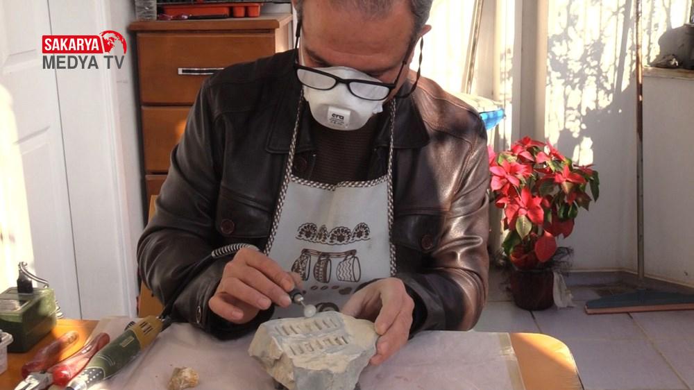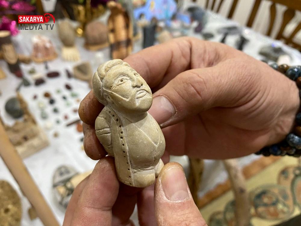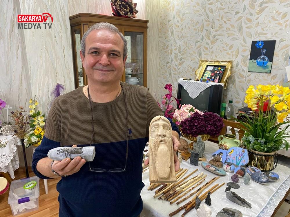 Rahime Hatun Mahallesi’nde yaşayan, 4 yıl evvel Tabiat Müdafaa ve Ulusal Parklar Şubesi’nden emekli olan Fatih Güvercin, 34 yıl evvel meyve bıçağı ile hobi olarak başladığı taş ve ahşap oyma sanatını, konutunun balkonunda oluşturduğu atölyesinde devam ettiriyor. Arkadaşlarıyla gittiği bir seyahatte buldukları taşa meyve bıçağıyla insan figürü verdikten sonra bu işe hobi olarak başladığını anlatan Güvercin, tabiatta bulduğu farklı çeşit taşları ve odun kesimlerini atölyesine getirerek burada nesnelere dönüştürdüğünü söyledi. Emekli olduktan sonra bu hobisine daha çok vakit ayırdığını kaydeden Güvercin, yaptığı eserlerin maddi bir karşılığı olmadığını, etrafındaki insanlara ikram edip toplumsal medya hesabından paylaştığını söz etti.