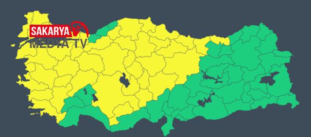 Meteoroloji, yarın için 43 ile sarı kodlu uyarıda bulundu. Sarı kodlu uyarılan iller şöyle sıralandı: Afyonkarahisar, Ankara, Balıkesir, Bolu, Çanakkale, Çorum, Edirne, Giresun, İzmir, Kayseri, Kırşehir, Konya, Manisa, Nevşehir, Ordu, Samsun, Sivas, Tokat, Uşak, Aksaray, Kırıkkale, Karabük, Amasya, Aydın, Bilecik, Bursa, Çankırı, Denizli, Eskişehir, İstanbul, Kastamonu, Kırklareli, Kocaeli, Kütahya, Muğla, Niğde, Sakarya, Sinop, Tekirdağ, Trabzon, Yozgat, Karaman ve Yalova.