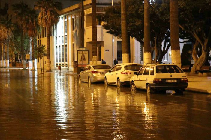 Taşan deniz suyu bazı noktalarda kentin içerisine kadar girdi.