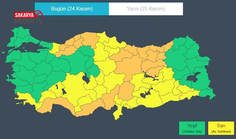 Meteoroloji Genel Müdürlüğü (MGM) tarafından bugün 20 vilayet için turuncu kodlu, 29 vilayet için sarı koldu ikaz yapıldı. Bu bölgelerde kuvvetli yağışlar ve fırtınanın oluşturabieceği olumsuz durumlara karşı dikkatli ve önlemli olunması istendi.