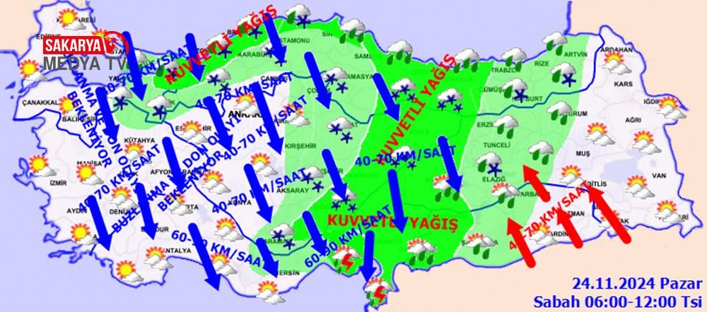 Parçalı ve çok bulutlu, Orta Karadeniz ile Doğu Karadeniz kıyılarının yağmur ve sağanak yağışlı, Orta ve Doğu Karadeniz’in iç kısımlarının karla karışık yağmur ve kar yağışlı geçeceği iddia ediliyor. Yağışların, bölgenin kıyı kısımları ile Tokat, Gümüşhane ve Bayburt etraflarında yer yer kuvvetli olması bekleniyor.