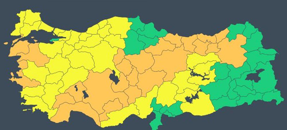 57 İL İÇİN SARI VE TURUNCU KODLU UYARI