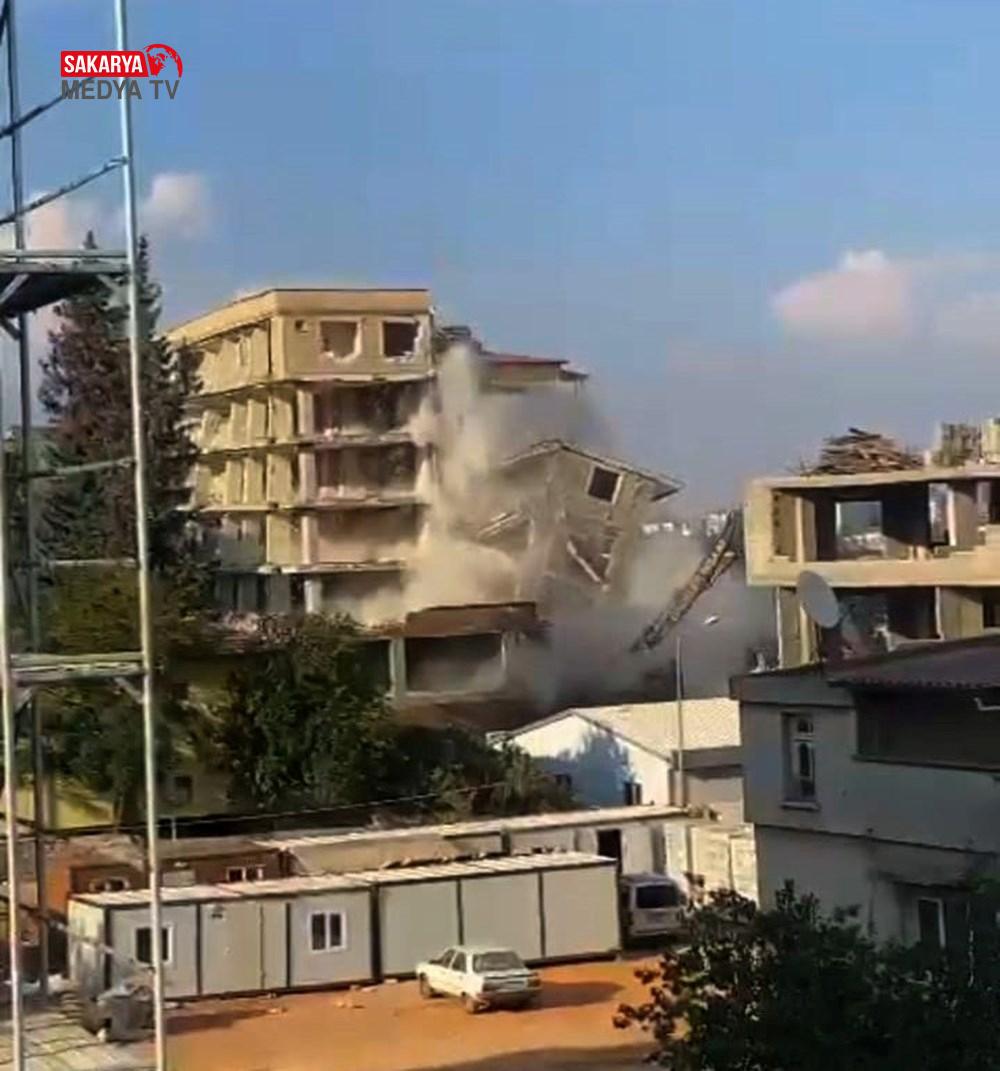 İş makineleriyle yapılan yıkım sırasında 6 katlı apartman, bir anda çöktü.