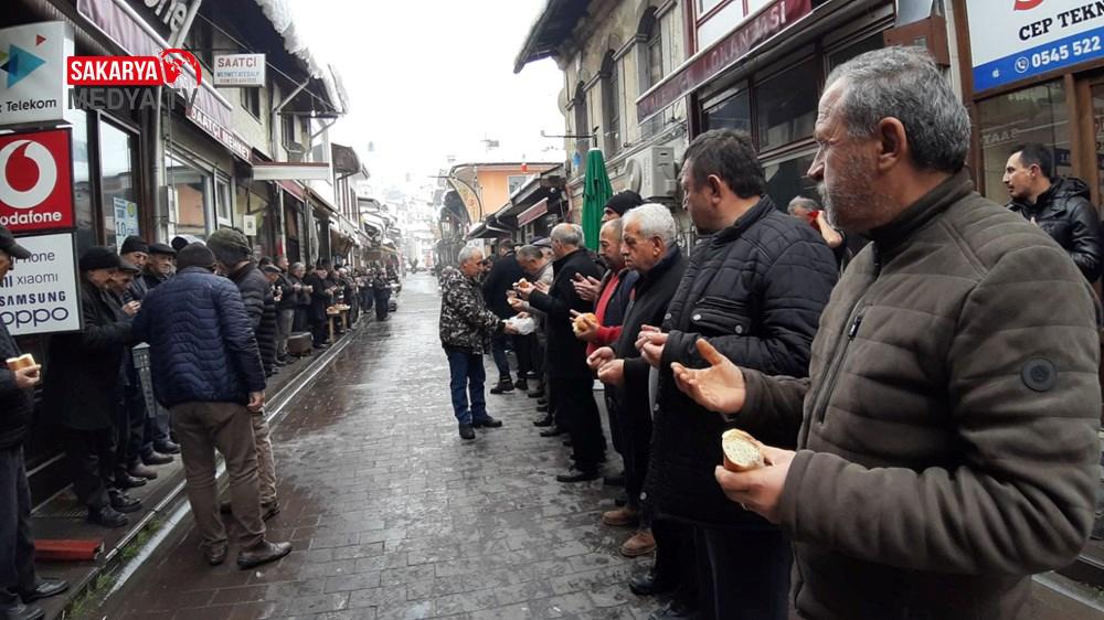 Cuma namazı öncesinde okunan geleneksel esnaf duası sonrasında hayırseverler tarafından esnaf ile vatandaşlara, lokum, hayır ekmeği ve pilav ikram edildi