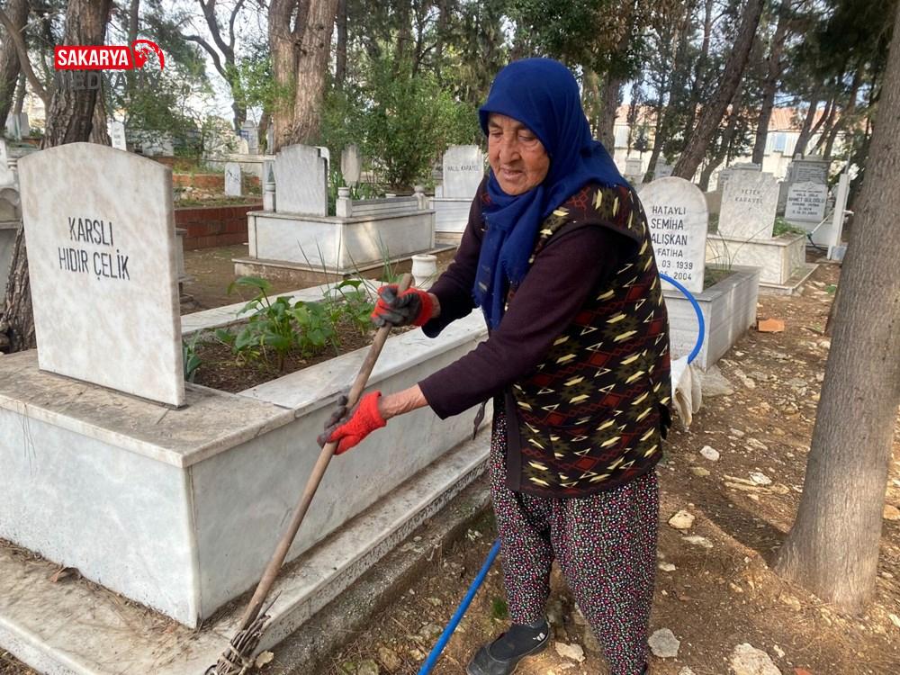 Bazı mezar sahiplerinin bayramlarda geldiğini belirten Raziye Atik, “Burada bulunan mezarlığın içerisini hiç tanıdık-yabancı demeden yapabildiğim kadar temizliyorum.