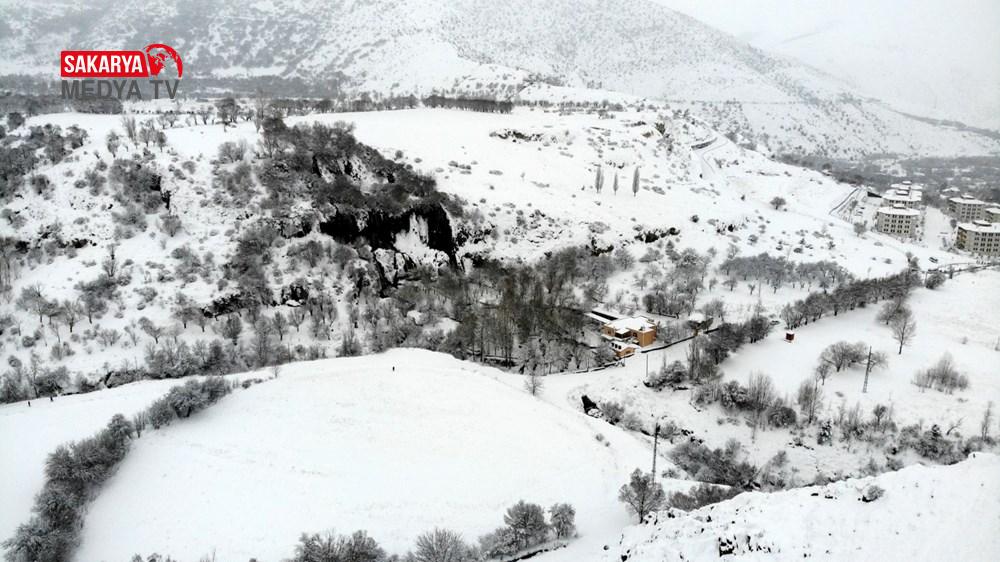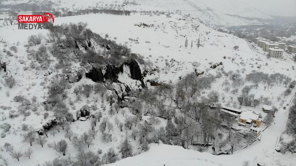 Çevre ve Şehircilik Bakanlığı Tabiat Varlıklarını Koruma Genel Müdürlüğünce “Doğal Sit-Nitelikli Doğal Müdafaa Alanı” olarak tescil edilen şelale, son günlerde yaşanan ağır kar yağışıyla beyaz gelinliğini giydi.