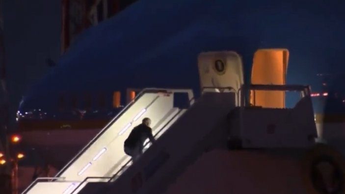 Temaslarını tamamlayan Biden, ülkesine dönerken yine bir kaza atlattı. Uçağına binerken ayağı merdivenlere takılan Biden, yere kapaklandı.