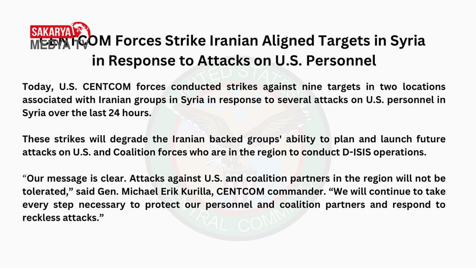 CENTCOM, hücumların hedefinin, İran dayanaklı kümelerin ABD çalışanı ve DAEŞ’e karşı çaba eden koalisyon güçlerine yönelik yeni akınlar düzenleme kabiliyetlerini azaltmak olduğunu belirtti.