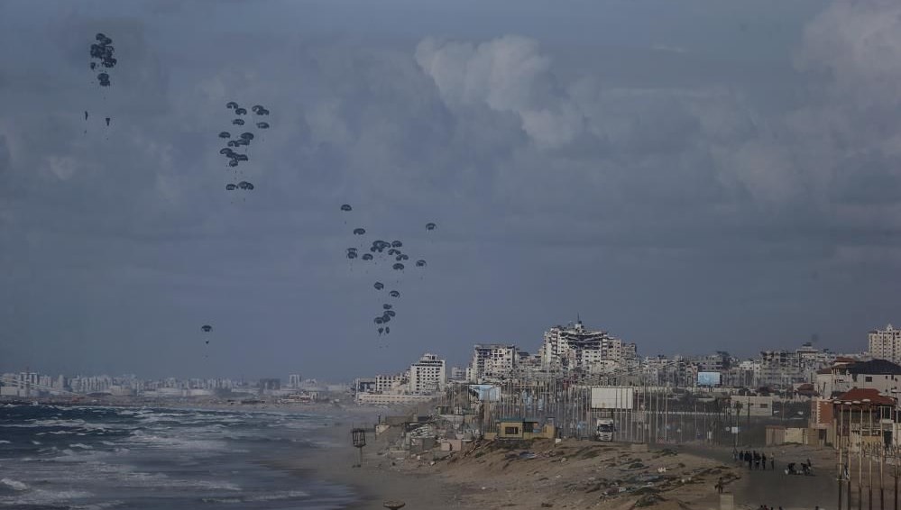 İsrail’in abluka altına aldığı Gazze Şeridi’ne havadan insani yardımlar sağlanmaya devam ediyor.