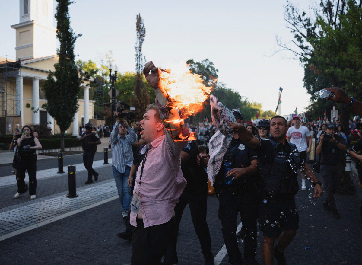 Beyaz Saray yakınlarındaki şovlarda gazeteci olduğunu sav eden bir kişi kendini yakmaya çalıştı. Sosyal medyada yayılan manzaralarda, genç bir erkeğin kendini ateşe vermeye çalıştığı anda polis tarafından engellendiği görüldü. “Ben gazeteciyim. Lütfen palavra haberi durdurun” diye bağıran kişi, kendini ateşe vermeye çalıştı. Protesto alanında bir kişi su atarak ateşi söndürmeye çalışırken, polis de kendini yakmaya çalışan bireye müdahale etti.