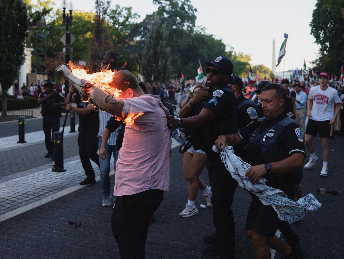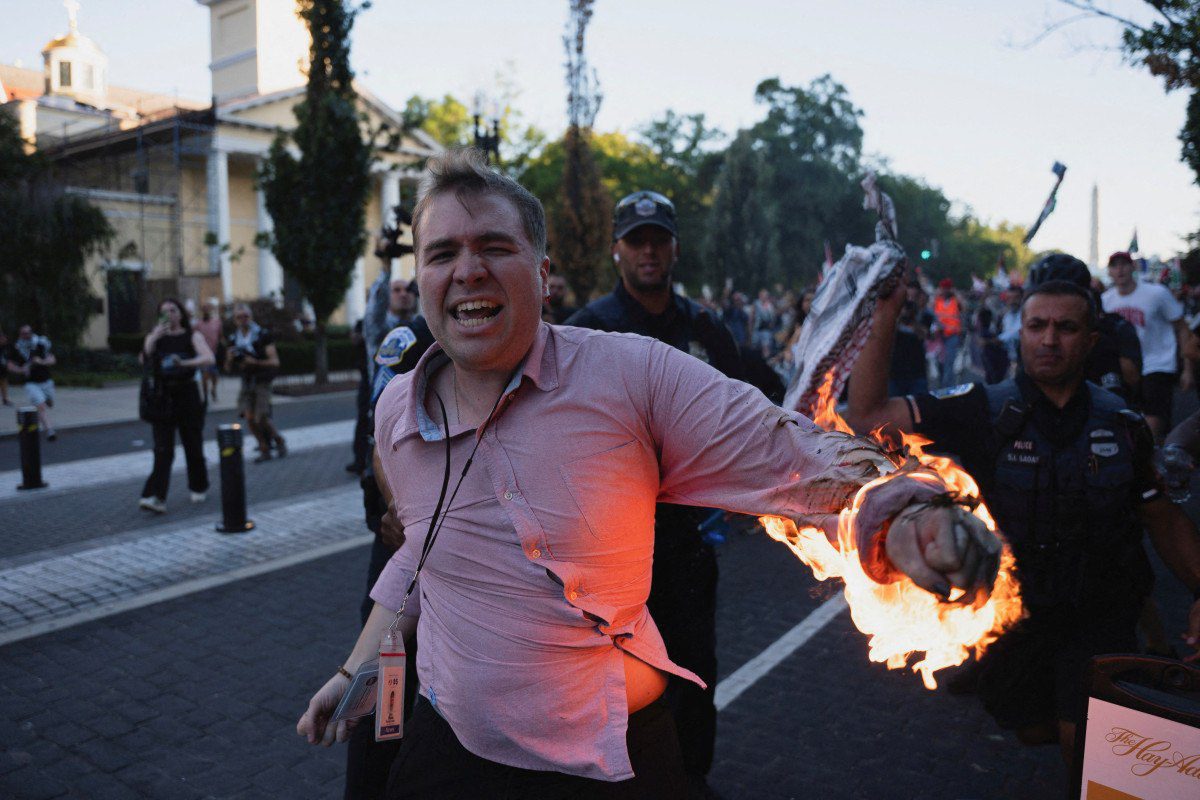 Söz konusu kişinin kolunda yanıklar olduğu görüldü. Görgü şahitleri, kendini ateşe veren kişinin “CBS’te gazeteci olduğunu” söylediğini ve “CBS’in Gazze’de palavra haber yaptığını” lisana getirdiğini belirtti.
