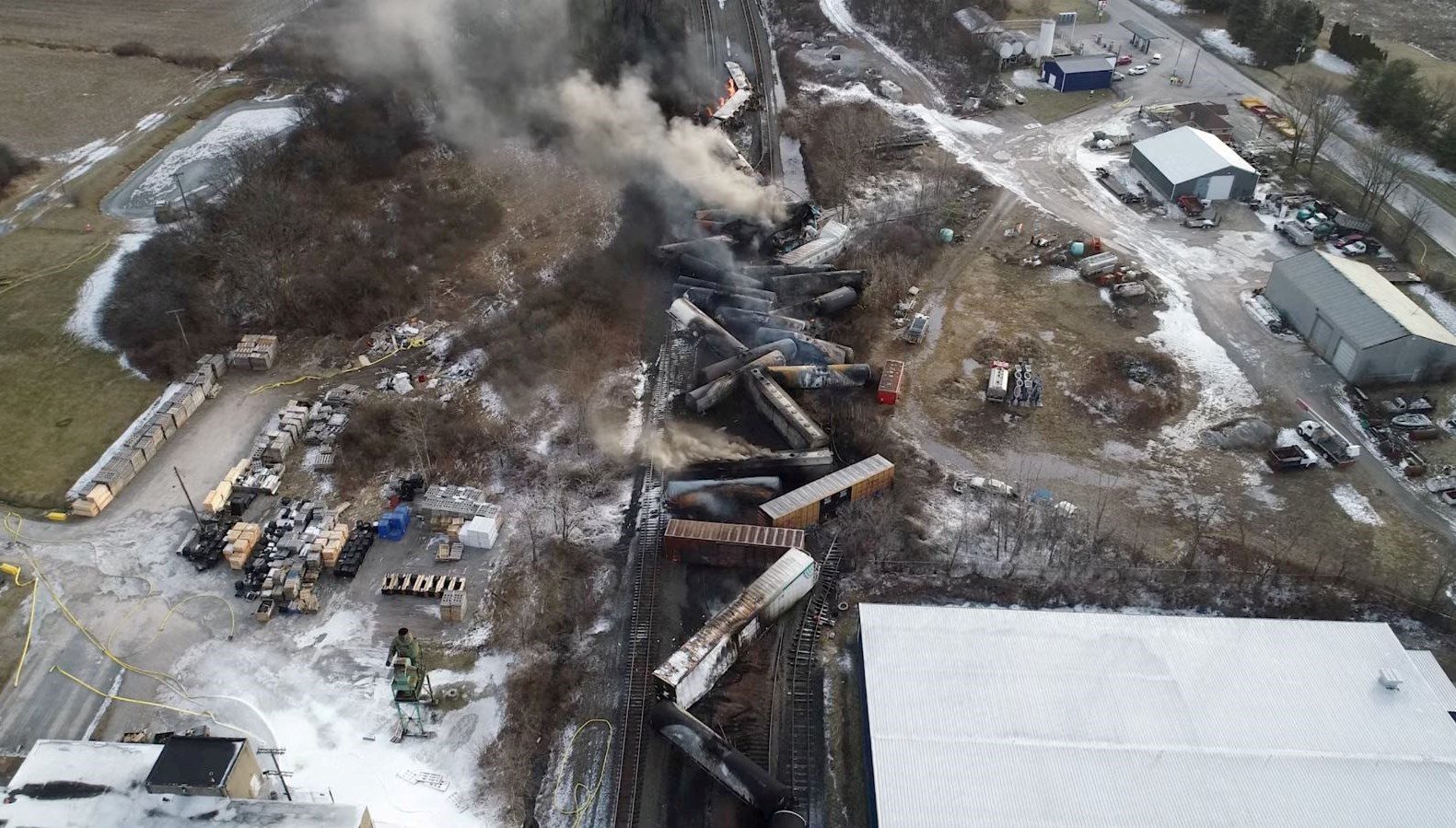 ABD’nin Ohio eyaletinin East Palestine kasabası yakınlarındaki demir yolunda kimyasal madde taşıyan 150 vagonlu trenin 50 vagonu, 3 Şubat’ta raydan çıkarak patladı.