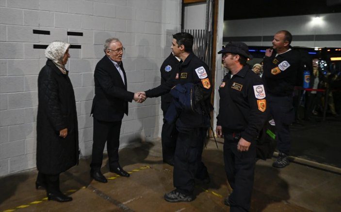 Yaklaşık 12 gün boyunca deprem bölgesinde enkaz altında arama kurtarma çalışması yürüten ekibi, Türkiye’nin ABD Büyükelçisi Murat Mercan ve aile üyeleri karşıladı.