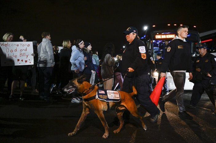 ABD Ulaştırma Komutanlığı (USTRANSCOM), ABD Avrupa Komutanlığı (USEUCOM) ve ABD Avrupa Hava Kuvvetleri (USAFE) koordinasyonunda 159 Kentsel Arama Kurtarma (USAR) personeli, 12 askeri çalışma köpeği ve yaklaşık 77 tonluk özel ekipmanı taşıyan ABD Hava Kuvvetlerine ait iki C-17 Globemaster III uçağı ABD saatiyle gece saatlerinde başkent Washington’a indi.