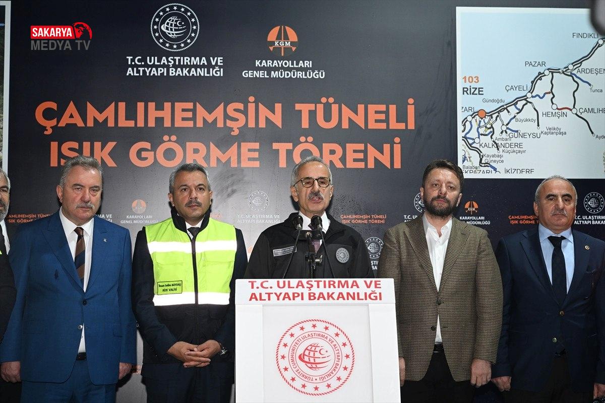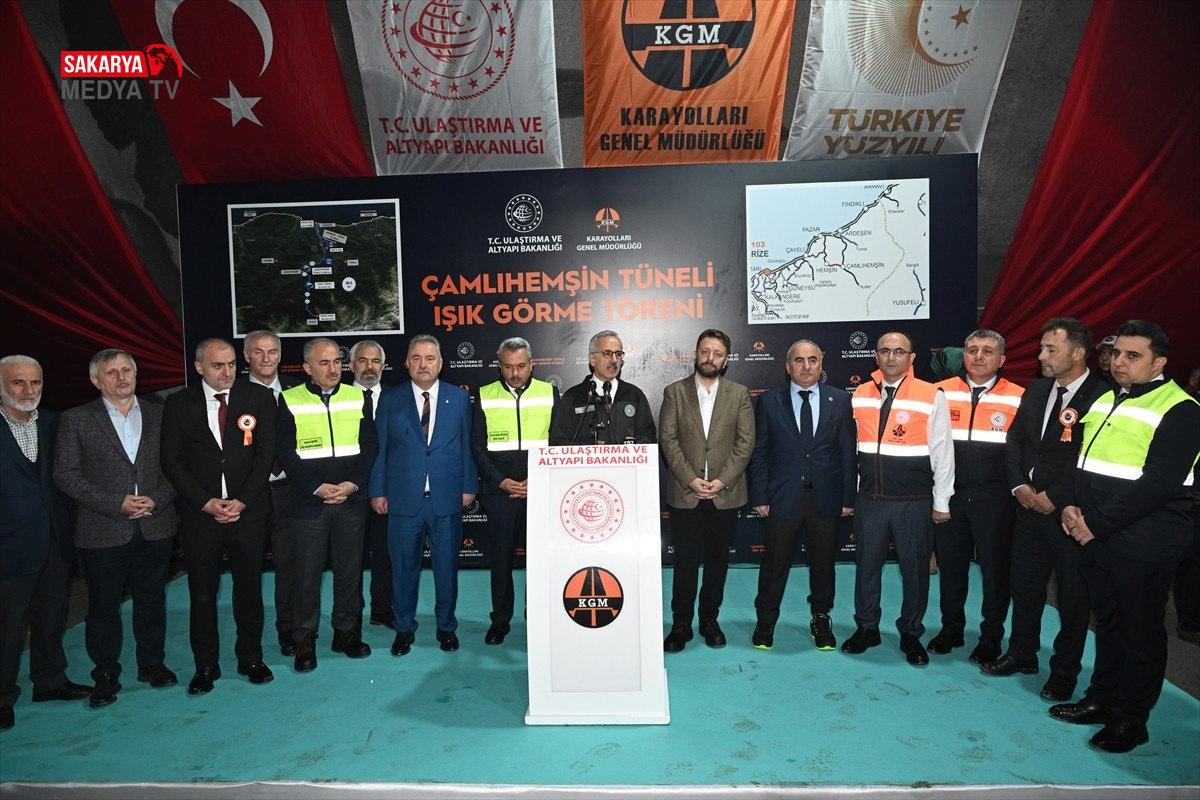 Uraloğlu, bu maniler karşısında asla pes etmediklerinin altını çizerek, şöyle devam etti:Dağları tünellerle delerek, derin vadileri köprülerle geçerek, insanımızın muhtaçlık duyduğu projeleri gerçekleştirdik, medeniyetimizin sonlarını genişlettik. Bugün burada 960 metrelik Çamlıhemşin Tüneli’ndeki hafriyat çalışmalarını tamamlayıp ışık görme evresine gelerek bu azmin ve kararlılığın bir örneğini daha yaşıyoruz.