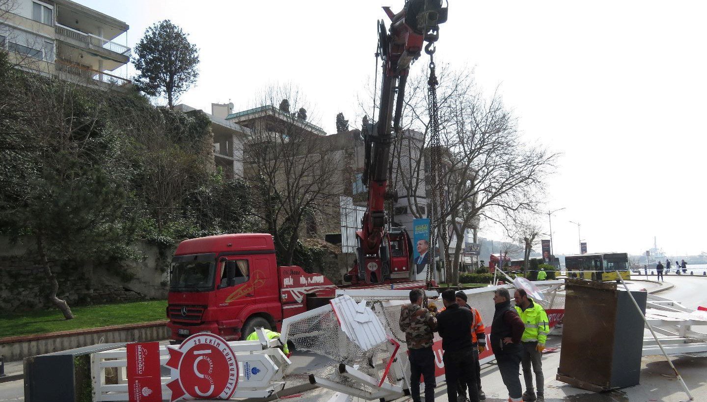 Üsküdar’da konteyner yüklü vinç demir platformu devirdi: Yol kapandı