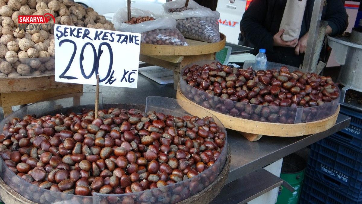 Kış aylarının vazgeçilmez yiyeceklerinden olan çiğ kestane 300 liradan, pişmiş kestane ise kilosu 500 liradan satılıyor.