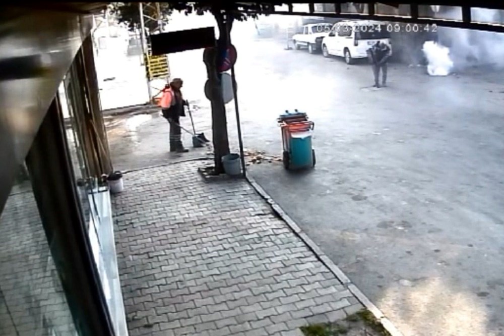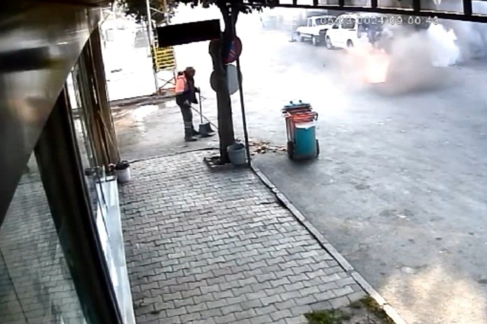 Patlamanın şiddeti nedeniyle ilaçlama yapan emekçi ile etraftakiler kısa vadeli panik yaşadı.