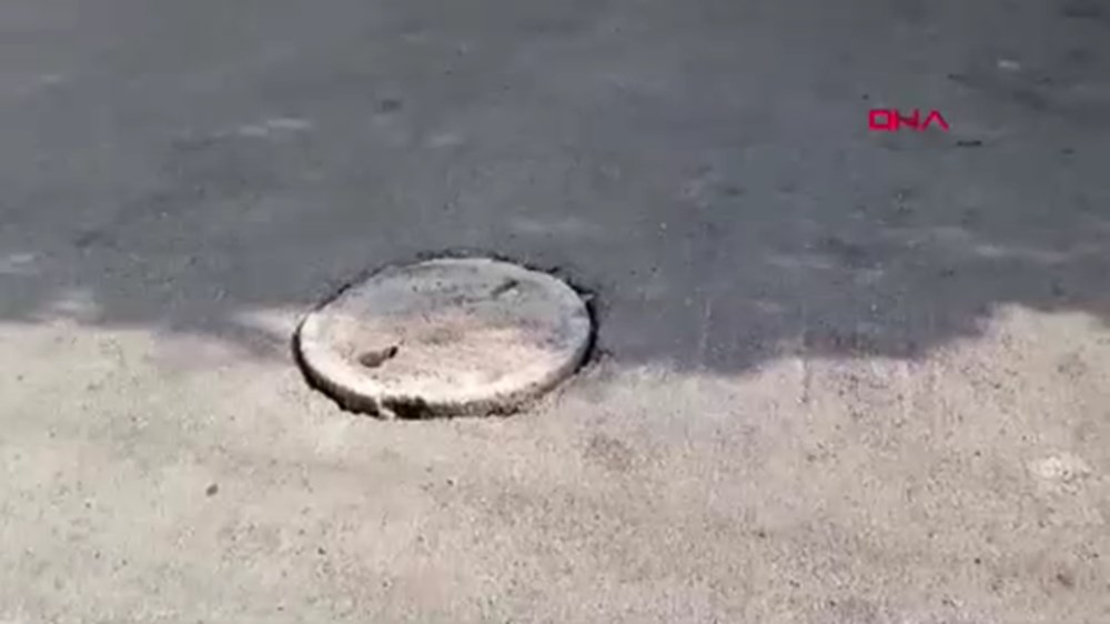 Patlamanın tesiriyle rögar kapağı birkaç metre fırlarken, rögardan da alev çıktı.