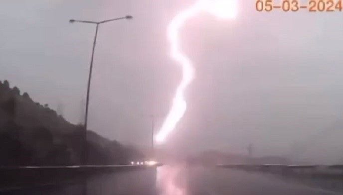 İzmir’de sağanak: Yıldırım düşme anı kamerada