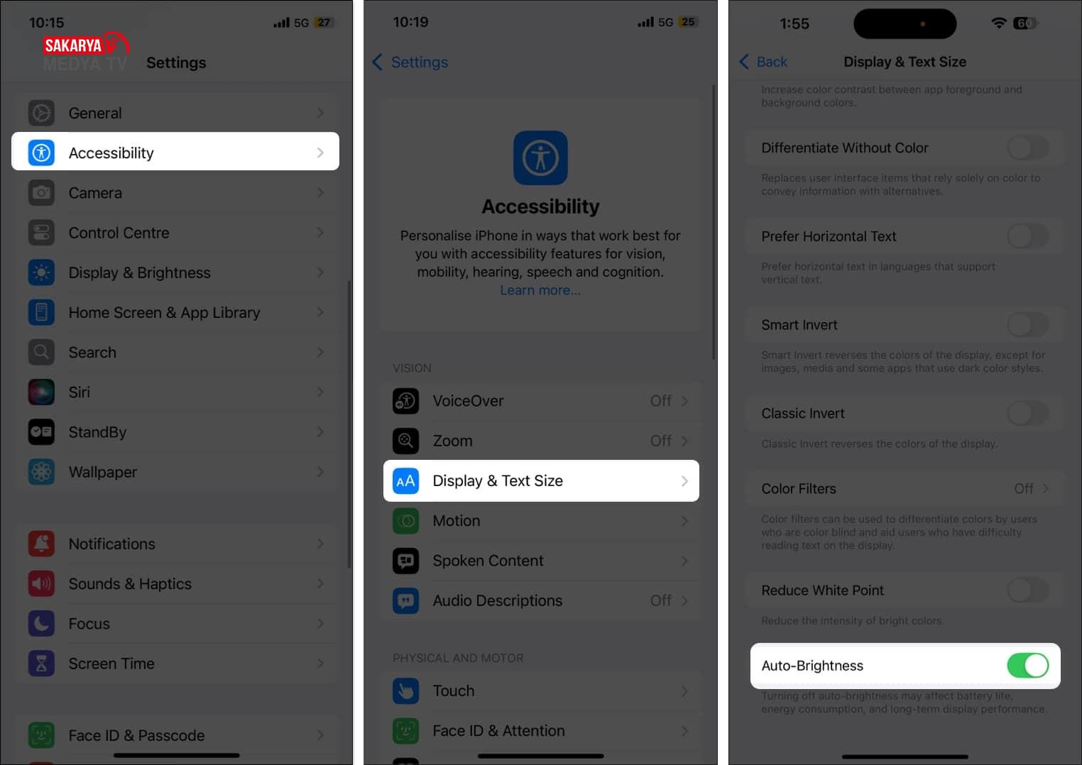 iPhone’da otomatik parlaklık kapatma adımları ⬇️