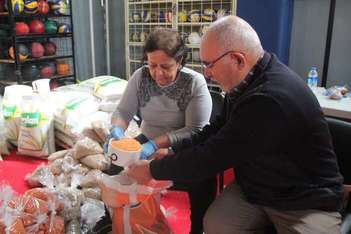 Kepez’de de başlatılan yardım kampanyasında Turgut Özal Spor Salonu yardımların toplanma merkezi olurken, ayrıştırılan ürünler kolilendikten sonra tırlarla deprem bölgesine gönderildi. Tekvando branşında lisanslı şekilde spor yapan ev hanımları, ev işlerinden arta kalan zamanlarda gıda yardımlarının paketlenmesini sağlıyor. Kadınların hazırladığı ürünler, kolilendikten sonra Antalya’da bulunan depremzedelere ulaştırılıyor.