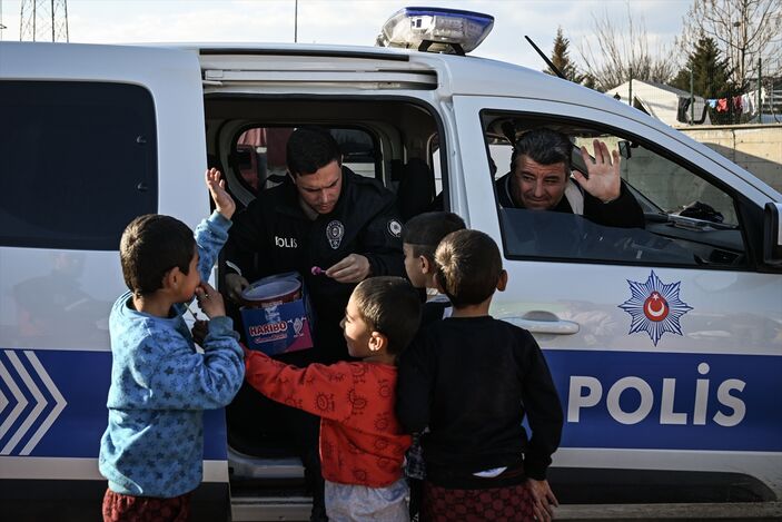 Bölgenin güvenliğini sağlayan jandarma ve polisler de çocukların mutlu olması için ellerinden geleni yapıyor.