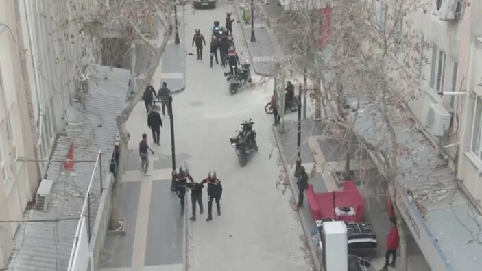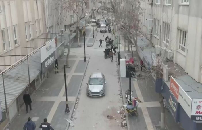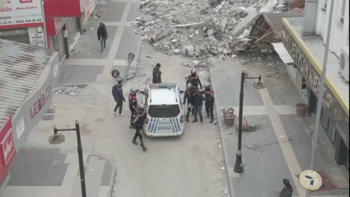 Kentte 10 motosiklet ve 20 personelle görev yapan Yunus timleri, birçok binanın yıkıldığı sokaklarda devriye görevi yürütürken şüphe üzerine 2 kişiyi durdurmak isterken şüpheliler kaçtı. Binaların enkazı arasında yapılan takiple 2 şüpheli yakalandı.