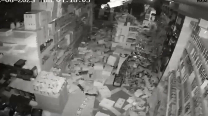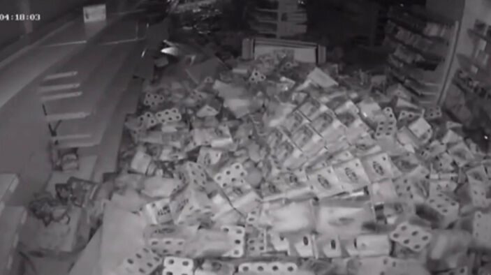 Görüntülerde ayrıca, marketin reyonlarının devrildiği, bilgisayar yazıcısının sağa sola savrulduğu anlar da yer aldı.