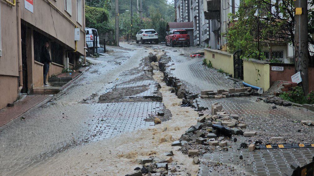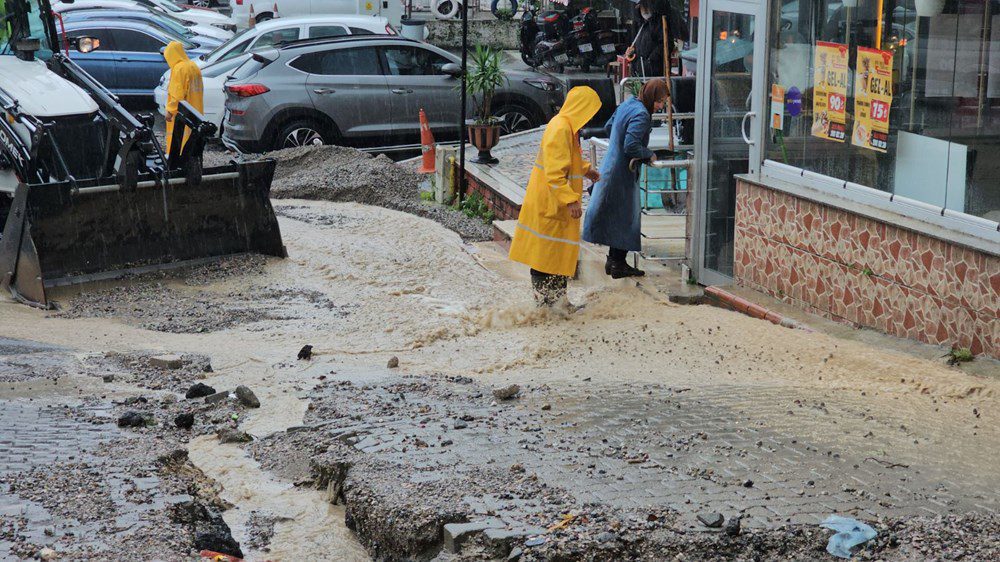 Zarurî olmadıkça trafiğe çıkılmasın. Kozlu kıyı yolunu kapattık, üst servis yoluna verdik fakat İncivez Mezarlığı’nın oradan küçük bir dere aşıp yolu kapatıyor.