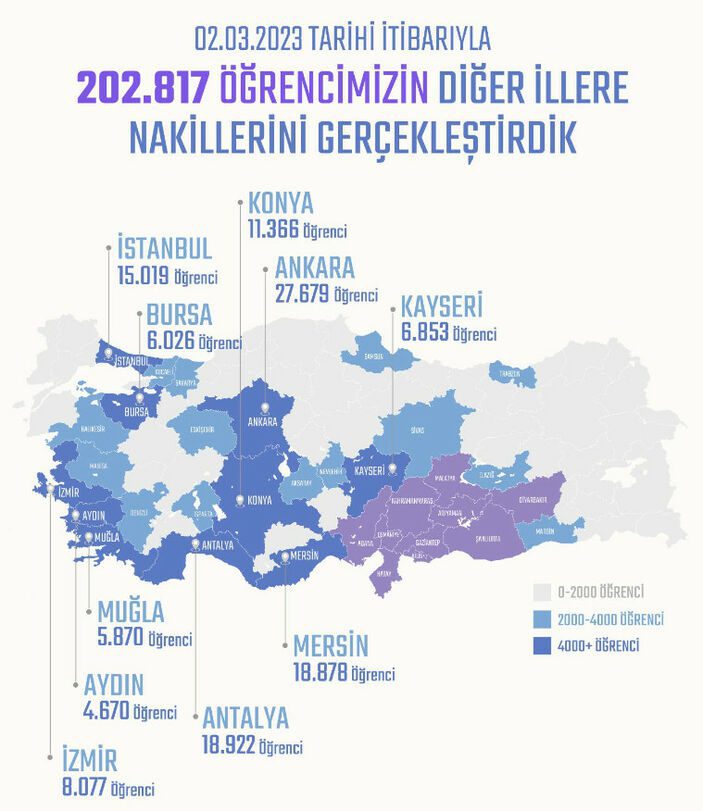Bugün itibarıyla 10 ilimizden 202 bin 817 öğrencimizin istedikleri illere nakil işlemini gerçekleştirdik. Evlatlarımızın her imkan ve koşulda yanlarında olmaya devam edeceğiz.