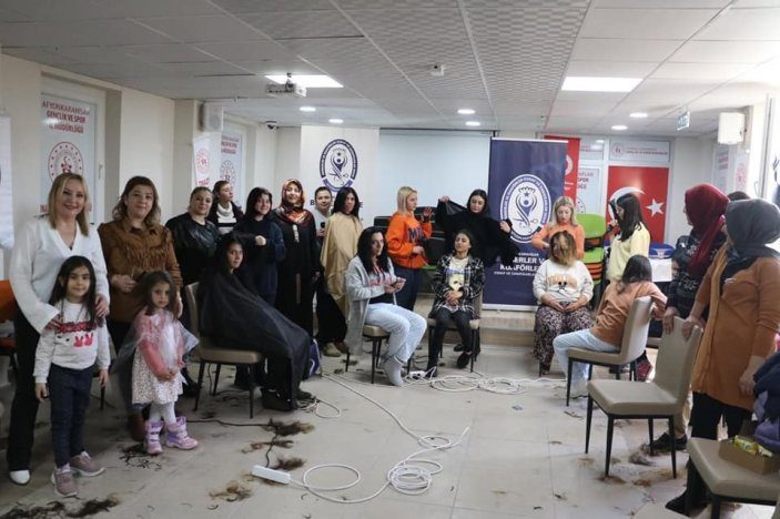 Kentte, depremzede kadın ve çocuklara Berberler ve Kuaförler Odası üyesi 65 kadın kuaför, ücretsiz saç kesimi ve cilt bakımı yaptı.