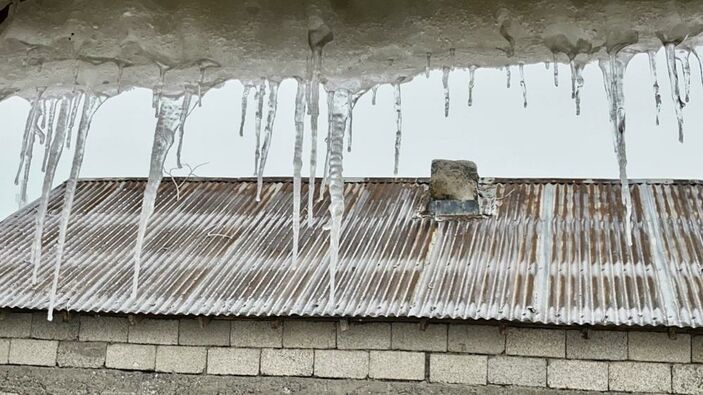Üzerinde oluşan buzlar nedeniyle çamaşırlar kaskatı kesilirken, evlerin çatı ve pencerelerinde oluşan buz sarkıtları ise Ağrı’da kışın ne derece sert geçtiğini gözler önüne serdi.