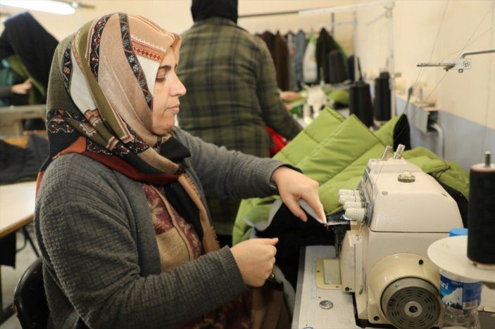 İl Milli Eğitim Müdürlüğü koordinesinde il genelindeki halk eğitim merkezlerinde görev yapan usta öğreticiler ile kursiyerler de depremzedeler için kışlık giysi dikiminin ardından uyku tulumu üretimine başladı.