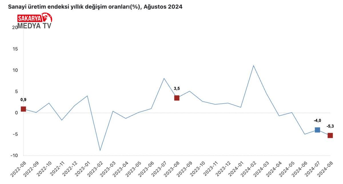 Sanayinin alt bölümleri incelendiğinde, 2024 yılı Ağustos ayında madencilik ve taş ocakçılığı bölümü endeksi, bir evvelki aya nazaran yüzde 4,4 azaldı, imalat sanayi dalı endeksi yüzde 1,3 azaldı ve elektrik, gaz, buhar ve iklimlendirme üretimi ve dağıtımı dalı endeksi yüzde 3,2 azaldı.