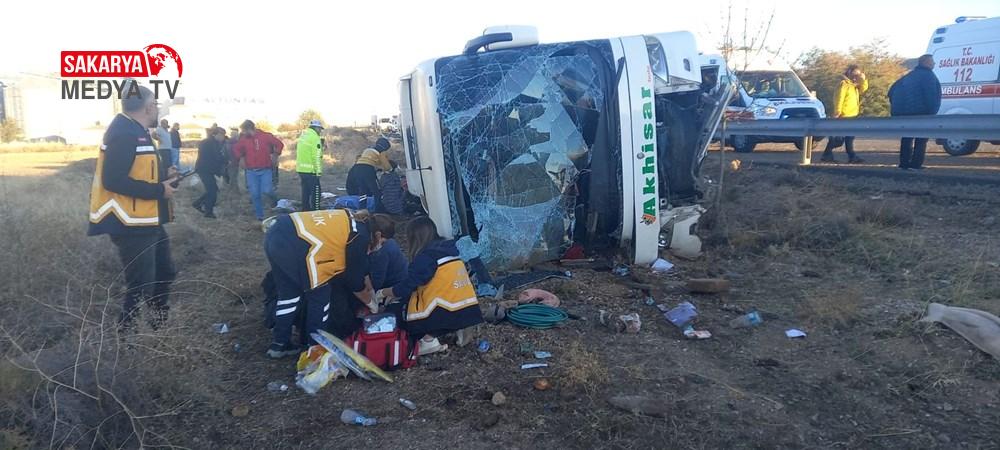 Balıkesir Bandırma’dan Kapadokya’ya seyahat için çıkan otobüs Aksaray-Ankara karayolunun yaklaşık 40. kilometresinde yoldan çıkarak şarampole devrildi. Olay yerine çok sayıda ambulans, polis ve itfaiye grubu sevk edildi.