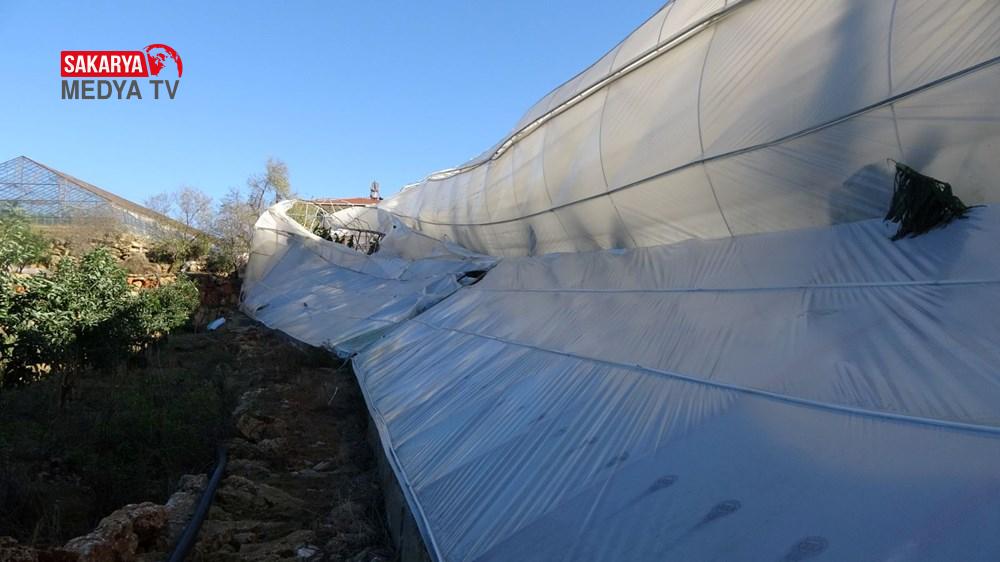 Fırtına, seraların yanı sıra ağaçların kırılmasına da neden oldu.