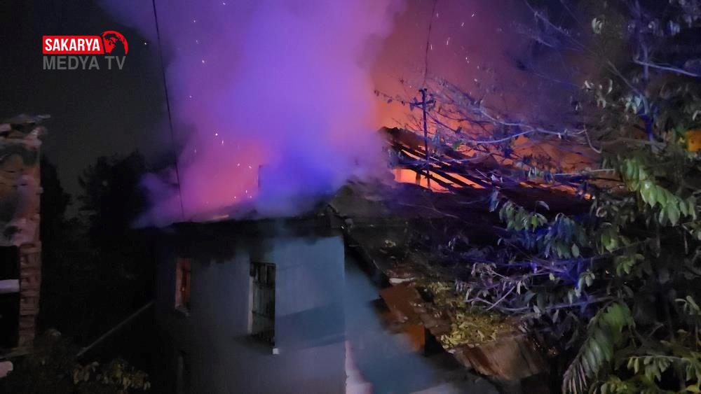 Alevlerin bir anda tüm konutu kapladığı yangında, engelli genç son anda meskenin dışına çıkarak kurtulurken meskenden yükselen alevler gecenin karanlığını aydınlattı.