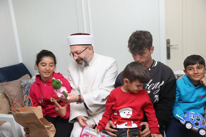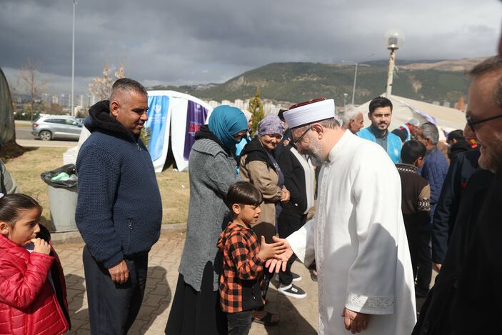 6 Şubat’ta merkez üssü Kahramanmaraş olan depremlerin ardından çalışmalar sürüyor. Bu kapsamda Kahramanmaraş Sütçü İmam Üniversitesi Karacasu yerleşkesindeki konteyner kente geçen Ali Erbaş, Diyanet Çocuk Etkinlik çadırındaki çocuklarla sohbet etti. Konteyner kentte yaşayan görme engelli Görkem Ailesi ile 6 kişilik Ağagürbüz Ailesi’ni ziyaret eden Erbaş, geçmiş olsun dileklerini iletti, ailelerin Berat Kandili’ni tebrik etti.