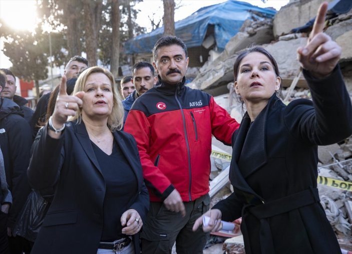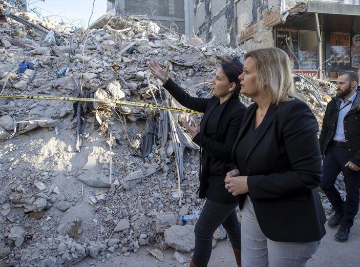 Türkiye tarihi felaketin yaralarını sarıyor. Depremin ilk gününden itibaren dünyanın yardıma koştuğu felaketten sonra Türkiye’ye dayanışma ziyaretleri devam ediyor. Bu kapsamda Almanya Dışişleri Bakanı Annalena Baerbock ve İçişleri Bakanı Nancy Faeser, depremlerin merkez üssü Kahramanmaraş’ın Pazarcık ilçesine geldi. İki bakan burada incelemelerde bulundu.