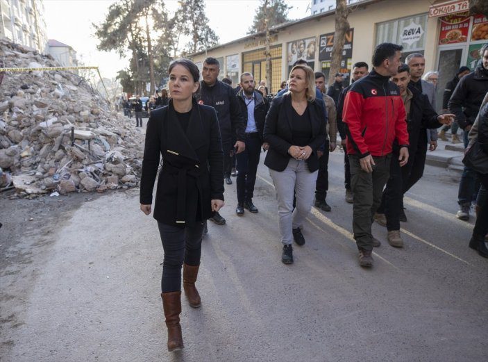 Baerbock ve Faeser, daha sonra ilçe merkezindeki enkaz bölgelerini gezdi, gazetecilere açıklamalarda bulundu. Burada yaşananları görmek için geldiklerini belirten Baerbock, “Bu deprem felaketinin boyutu, burada olsanız bile kelimelerle ifade edilemez.” dedi. Dün de bölgede deprem meydana geldiğini ve insanların geceyi araçlarında geçirdiğini hatırlatan Baerbock, kendilerinin de depremi hissettiklerini söyledi. Baerbock, burada uluslararası yardımın ne kadar önemli olduğunu gördüklerini dile getirdi.