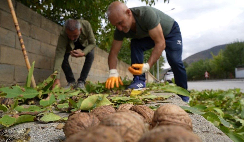 Cevizleri sırıkla döktüklerini belirten Anlar, düşen cevizleri toplayarak yaklaşık 10-15 gün güneşte kurutacaklarını söz etti.