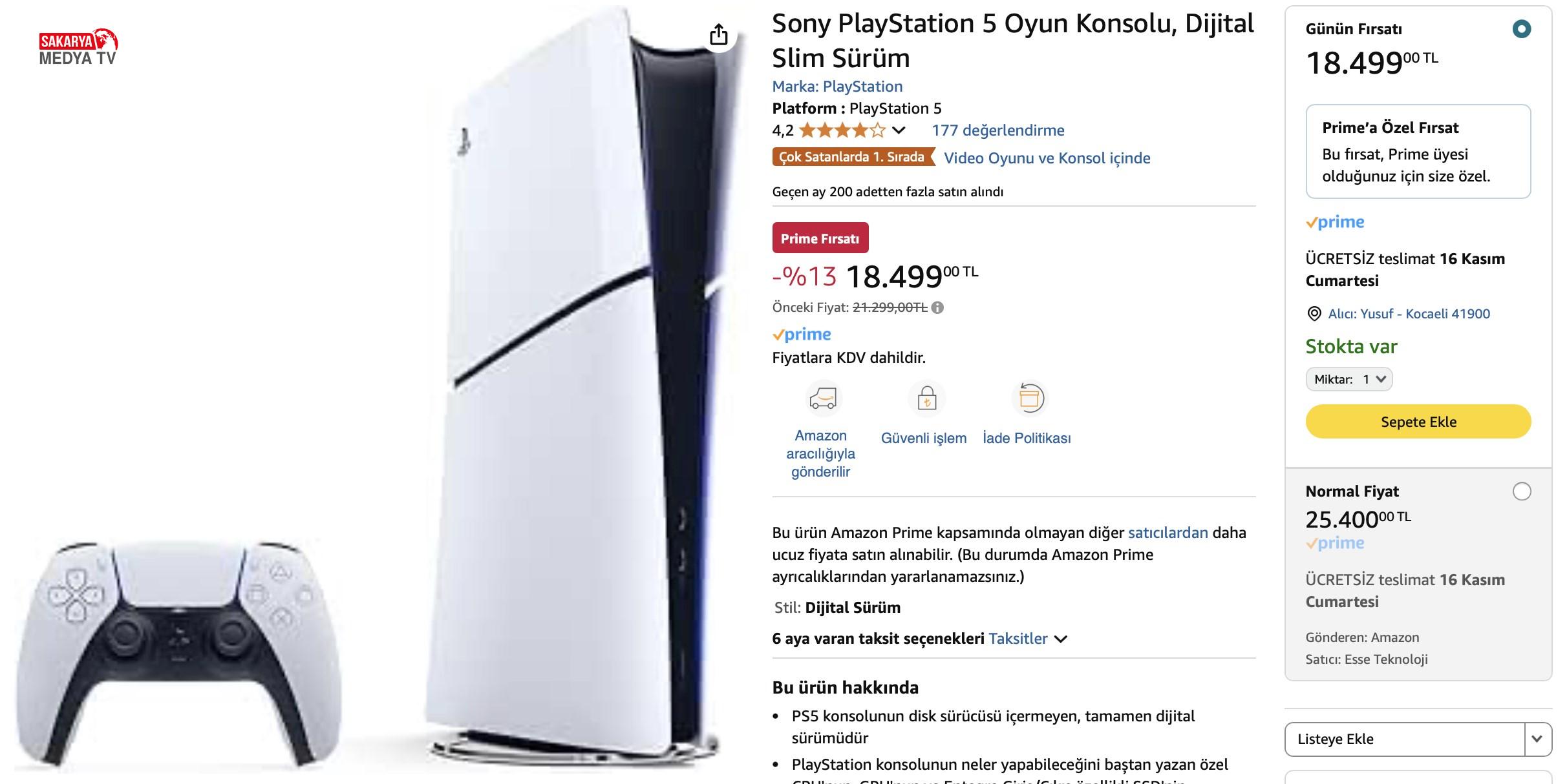 PS5 Slim Digital Edition 1 TB SSD oyun konsolu 18.499 TL’ye satılıyor. İthalatçı Garantili olarak satılan konsolun satıcısı ise “Esse Teknoloji”. Konsol fiyatının Ağustos’tan beri en düşük seviyede olduğunu söyleyebiliriz.