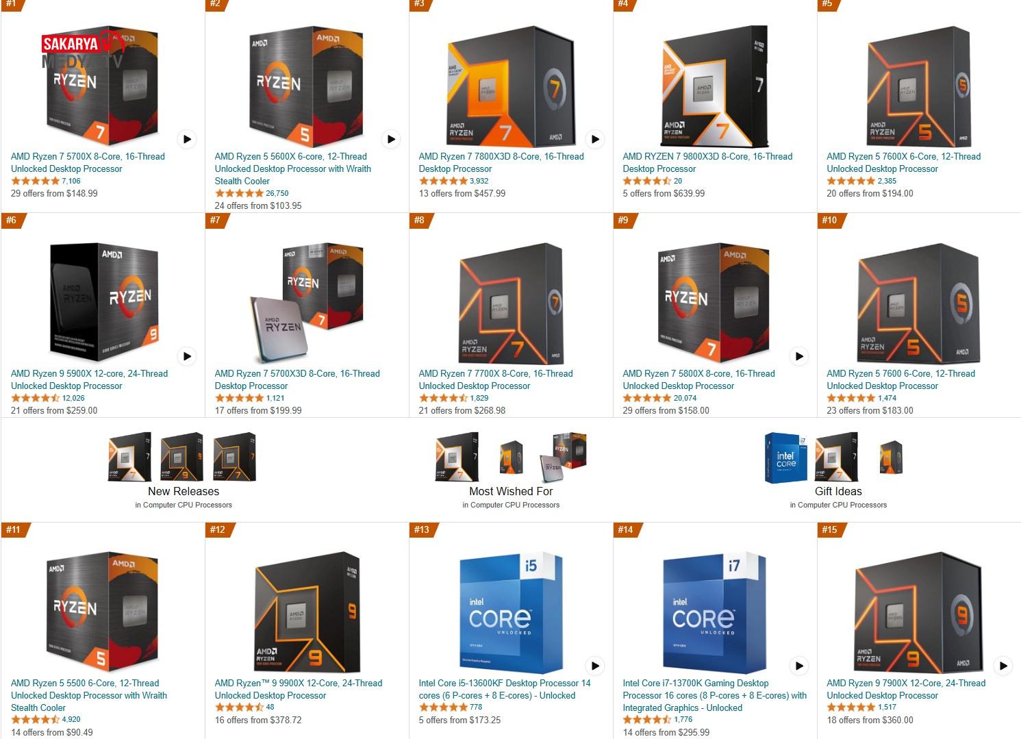 Bunun nedeni, serinin X3D olmayan modellerinin beklenen büyük performans kazancını sergileyememiş olması. Buna karşılık Intel, üst düzey Raptor Lake ve Raptor Lake Refresh işlemcileriyle ciddi zorluklarla karşı karşıya ve kıyaslandığında AMD’nin sorunları çok küçük kalıyor. Bu durum Amazon’un listesine de yansıyor; Intel, listede kendisine Core i5 13600KF ile 13. sırada yer bulabiliyor.