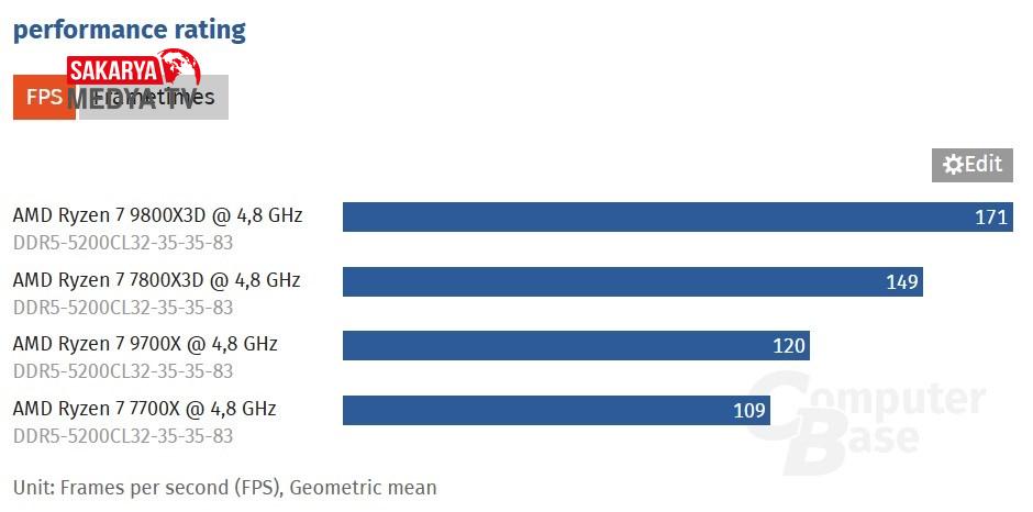İlginç bir detay olarak, 7800X3D modelinin saat hızı ve çarpan ayarları yapılamazken 9800X3D’de bu özellik aktif. Bu durum, daha fazla ince ayar yapılabilen bir test ortamı yarattı. Ancak, test esnasında 9800X3D’nin saat hızı 250MHz düşürülerek 4.8GHz seviyesine sabitlendi. Böylece her iki işlemci arasında doğrudan bir performans karşılaştırması mümkün hale geldi. ASUS ROG X670E Hero anakart ve DDR5-5200 RAM ile yapılan denemelerde, Anno 1800, Baldur’s Gate 3, Cyberpunk 2077, F1 24, Homeworld 3, Horizon Forbidden West ve Starfield gibi popüler oyunlar test edildi. Buna göre 7800X3D, 7700X’e kıyasla yüzde 37 daha hızlıyken, yeni 9800X3D’nin 9700X’e kıyasla yüzde 43 gibi devasa bir fark oluşturuyor.