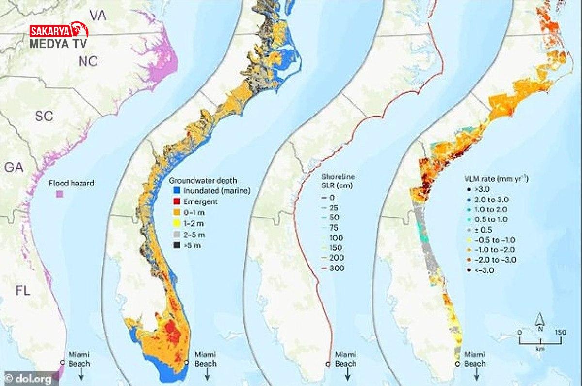 ABD Jeoloji Araştırmaları Kurumu (USGS) araştırmacıları, 2100 yılına gelindiğinde ABD Doğu Kıyısı’nın; yükselen deniz düzeyleri, su baskınları ve batan topraklar nedeniyle önemli halde etkileneceğini öngörüyor.