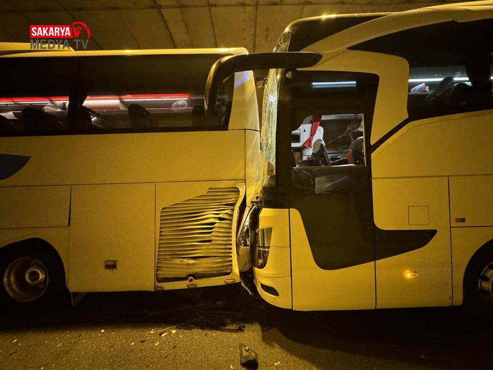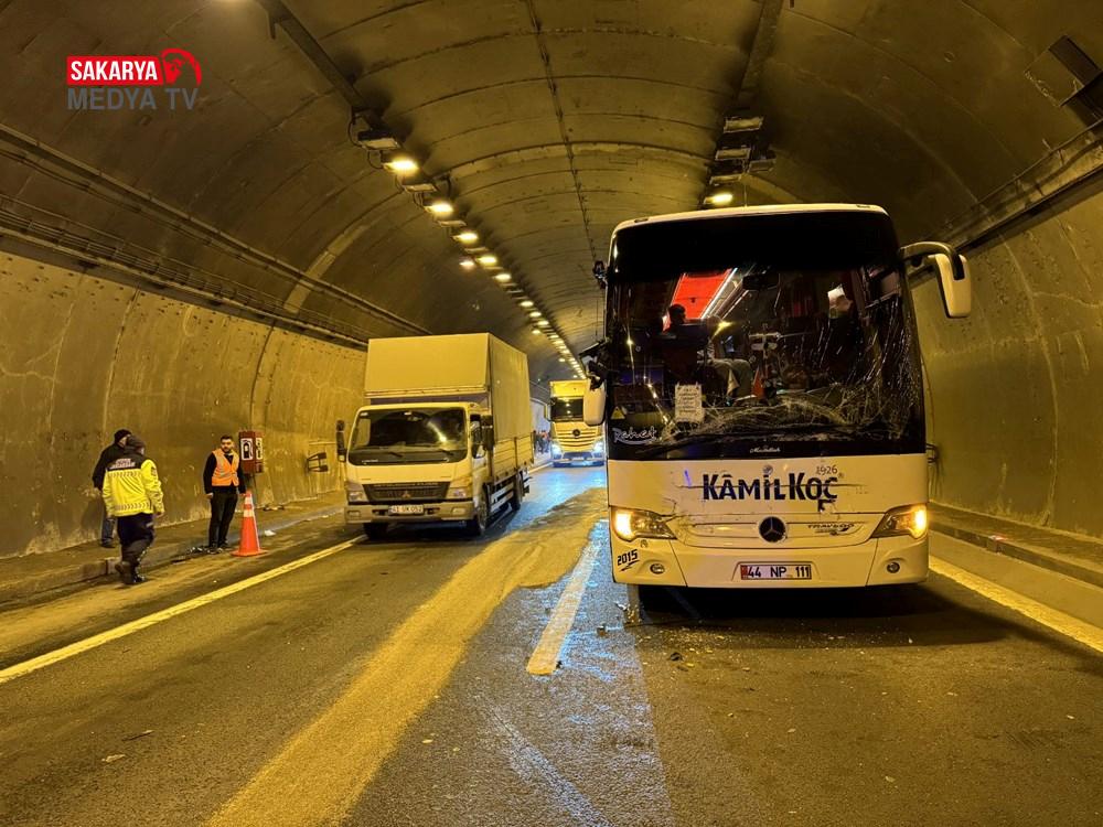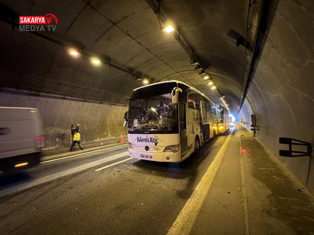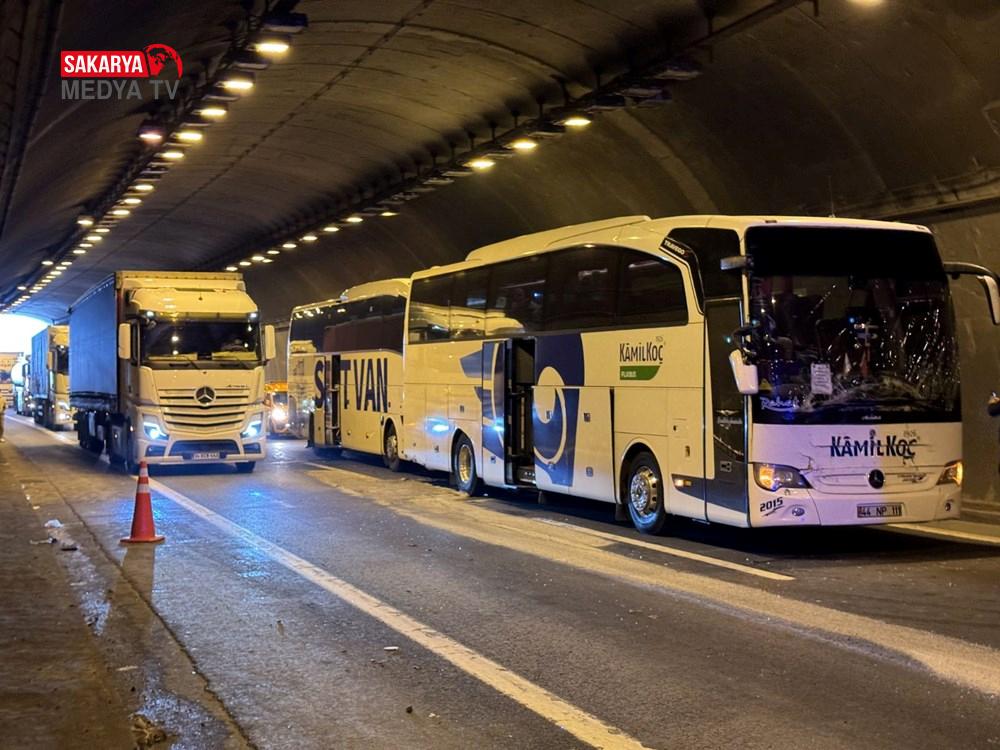 Anadolu Otoyolu’nun İstanbul istikameti Korutepe Tüneli mevkisinde 2 otobüs ve 1 TIR’ın karıştığı zincirleme trafik kazası meydana geldi.