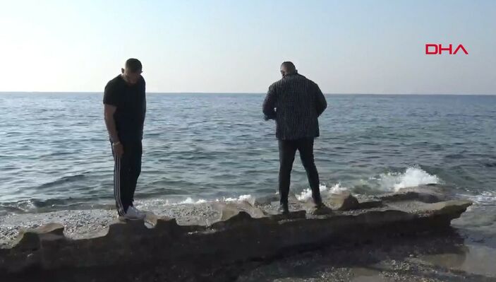 Yaşanan deprem sonrası deniz suyundaki çekilme nedeniyle ana kayalar da olarak ortaya çıktı.